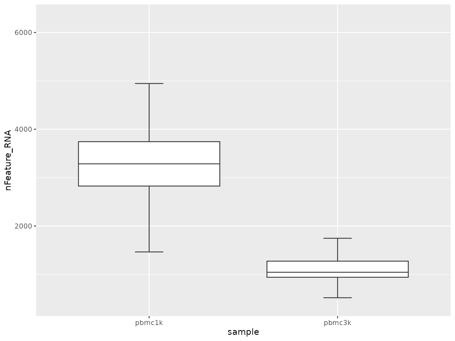 sn_plot_boxplot(score_tbl, x = sample, y = nFeature_RNA)