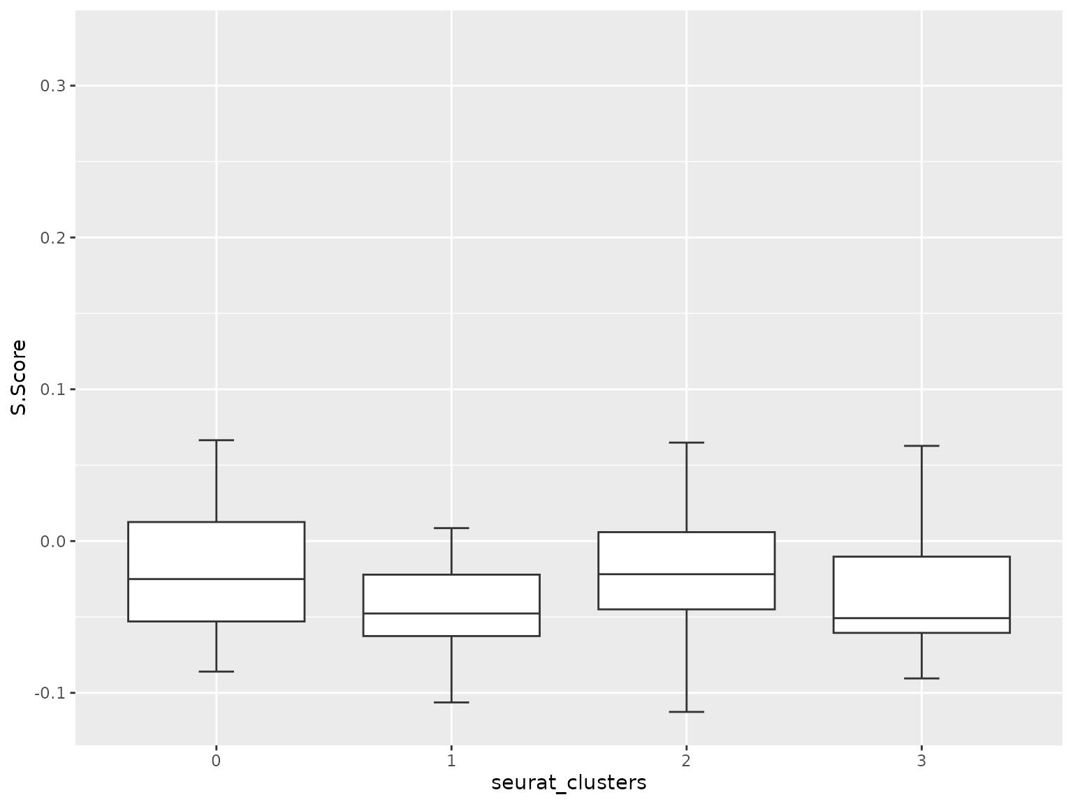 sn_plot_boxplot(score_tbl, x = seurat_clusters, y = S.Score)